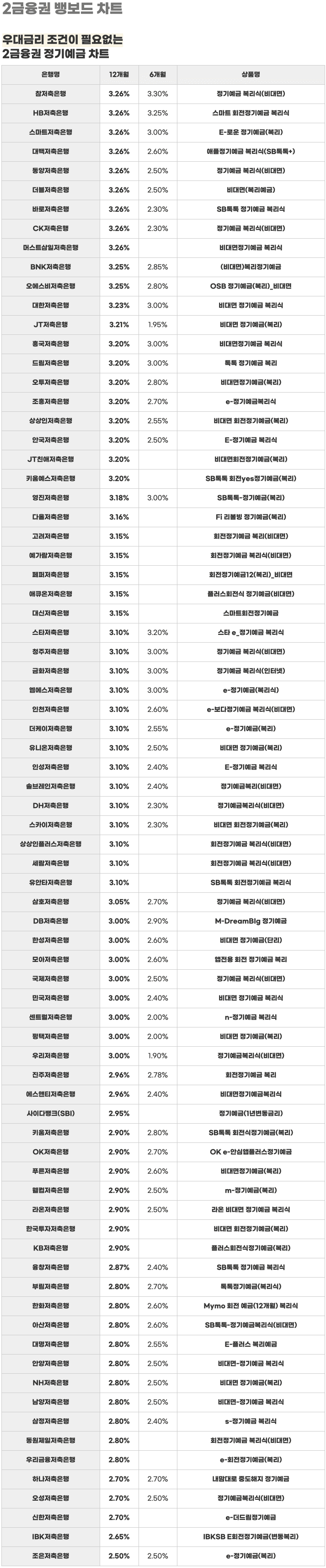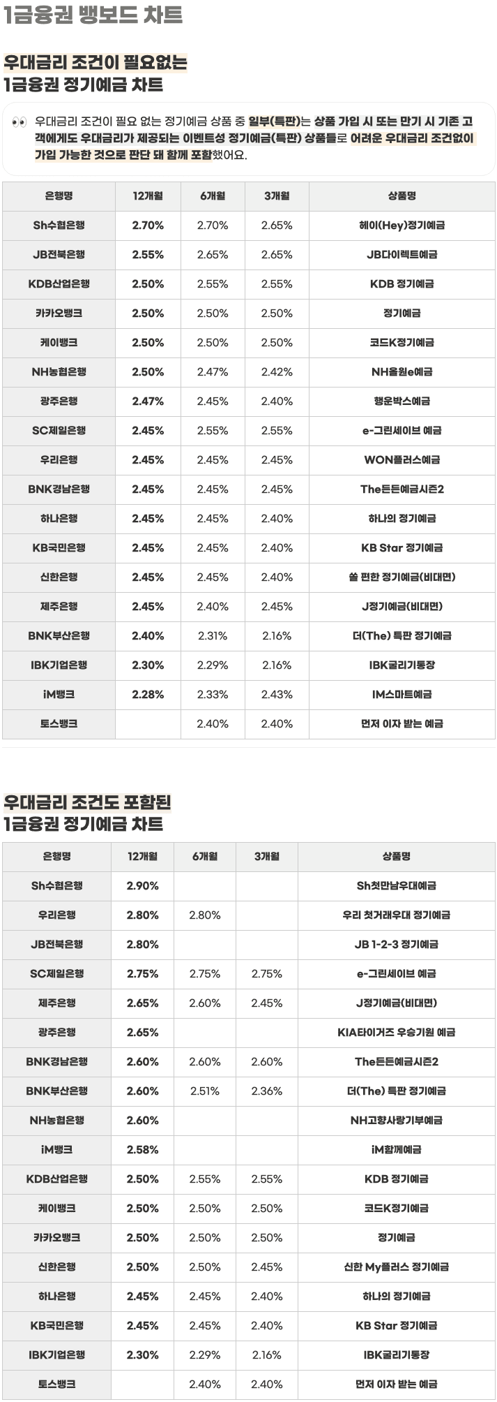 매영업일의 은행 금리를 배달해드리는 일간 뱅보드 차트예요.