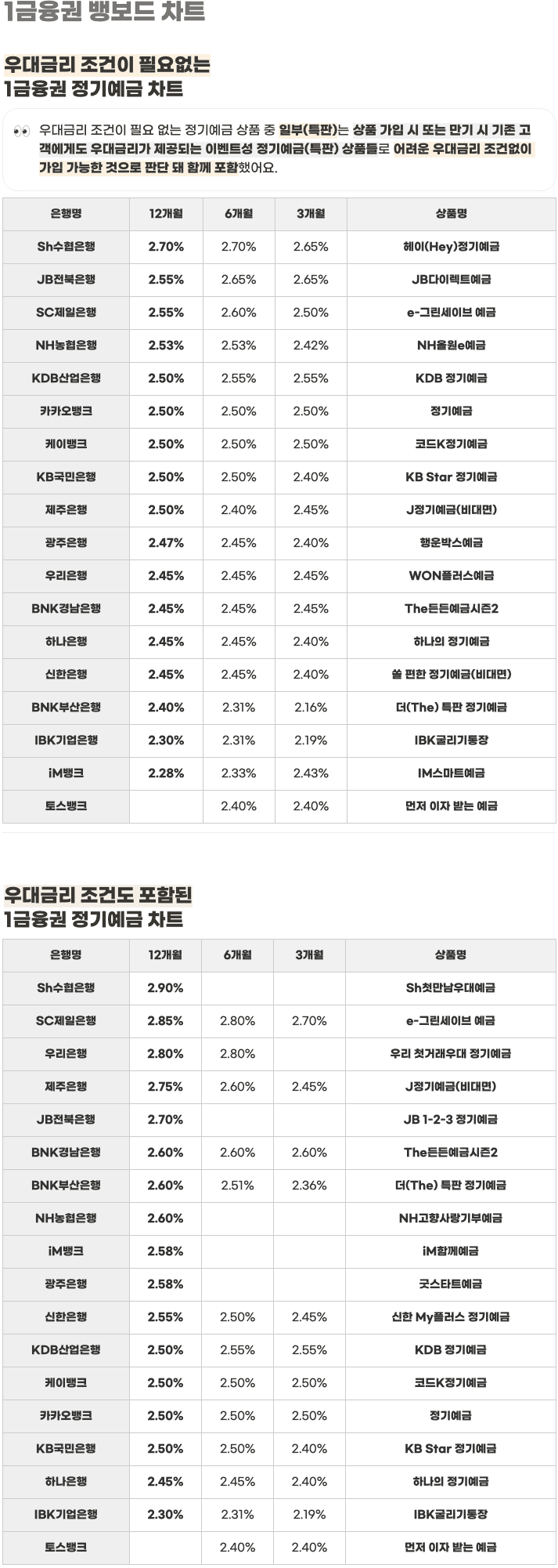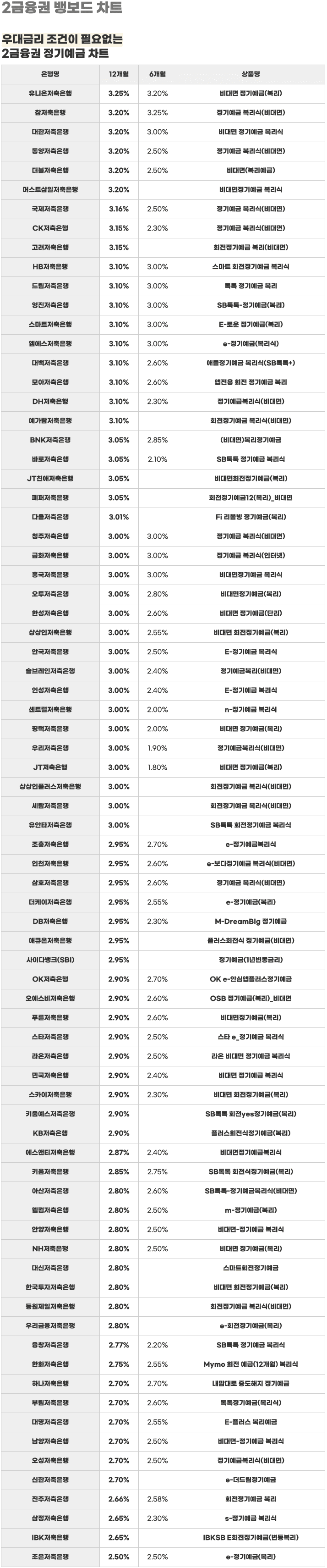 매영업일의 은행 금리를 배달해드리는 일간 뱅보드 차트예요.