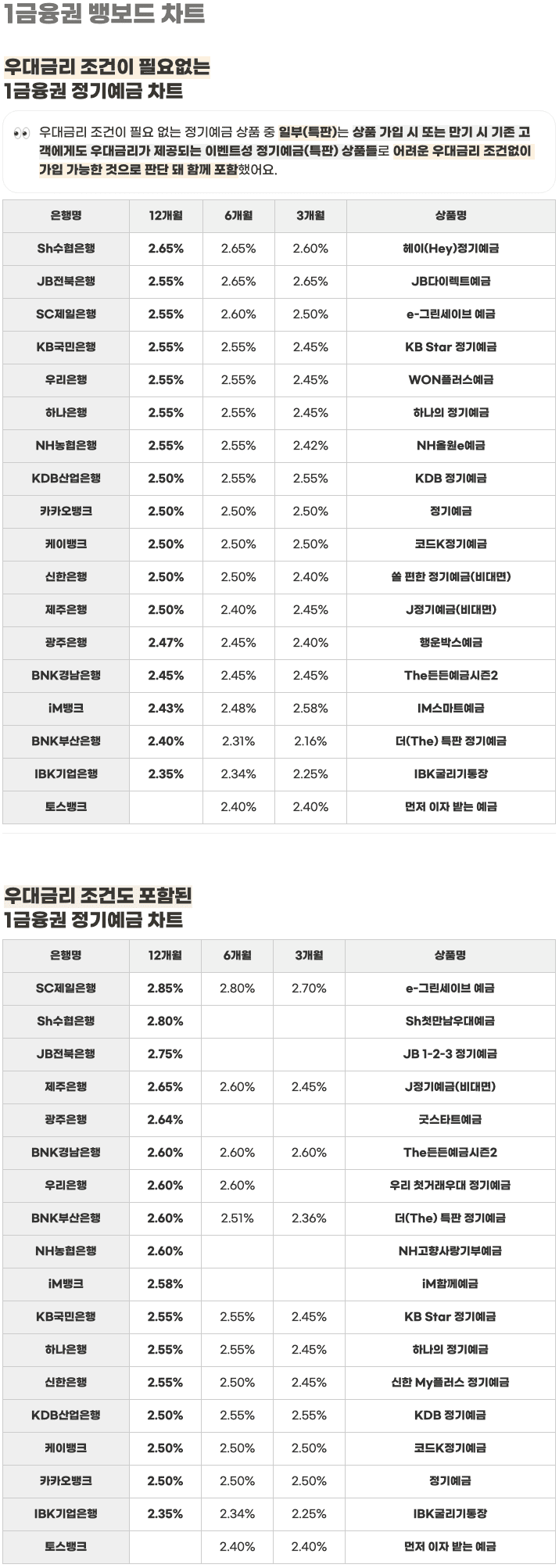 매영업일의 은행 금리를 배달해드리는 일간 뱅보드 차트예요.