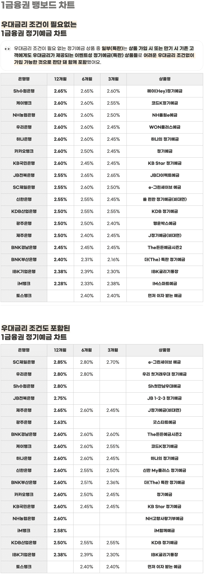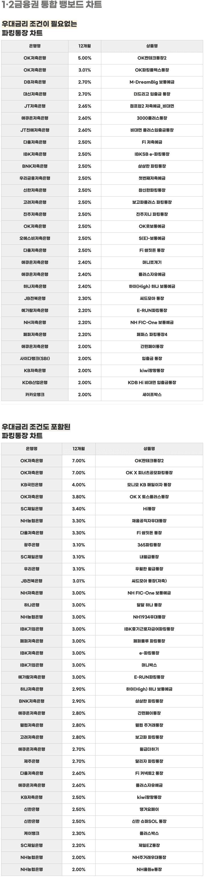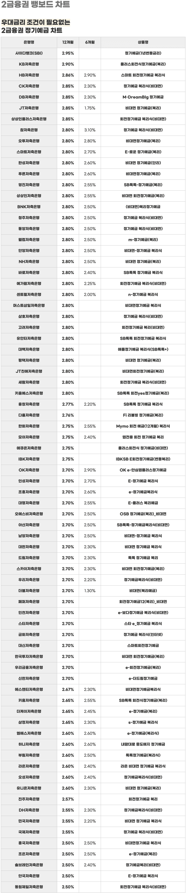 매영업일의 은행 금리를 배달해드리는 일간 뱅보드 차트예요.