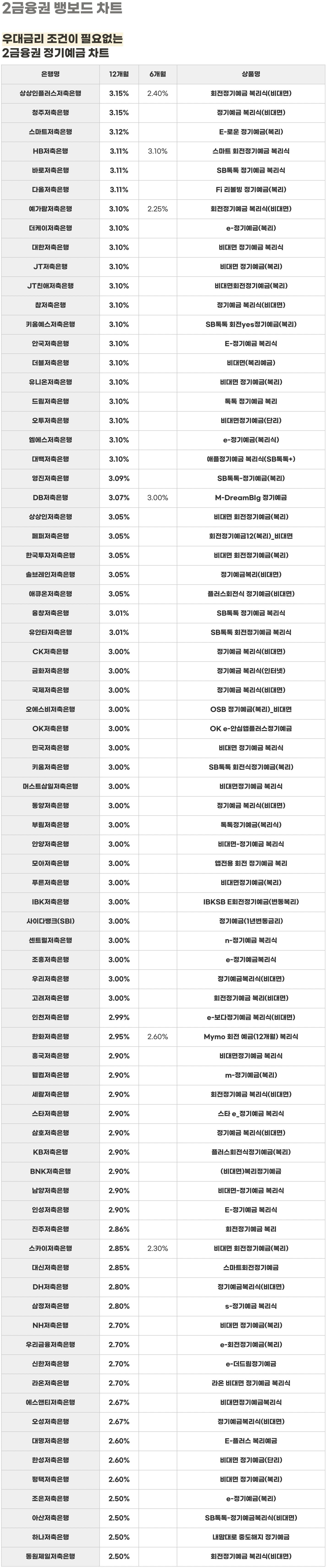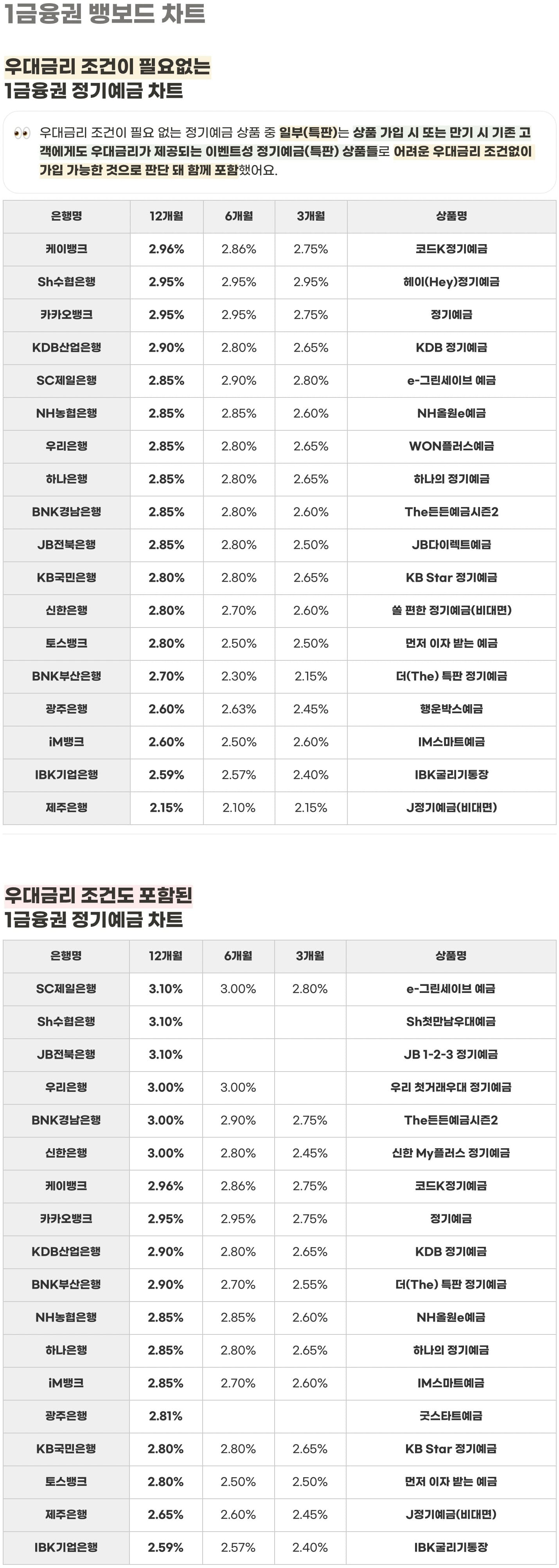 매영업일의 은행 금리를 배달해드리는 일간 뱅보드 차트예요.